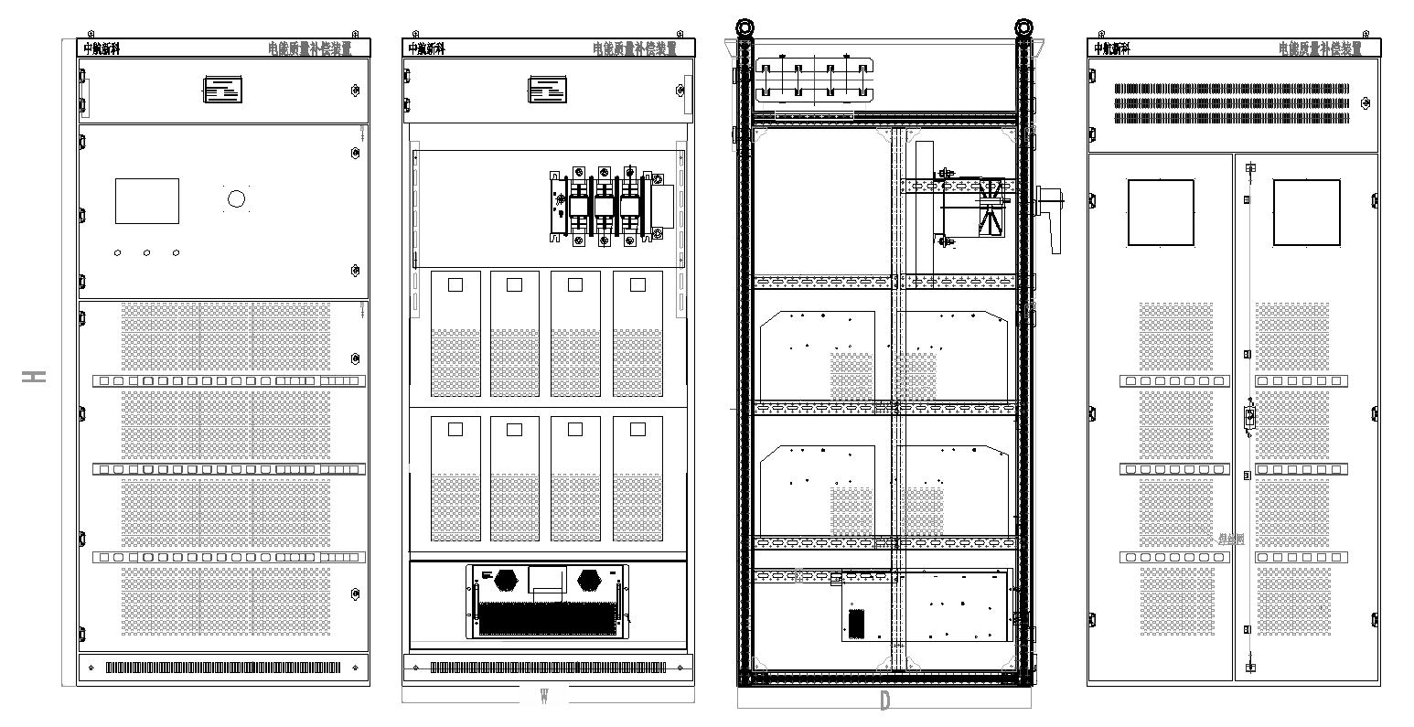 模块设计;电能质量补偿装置装置采用模块化组装工艺,结构简单合理,模块组装互换通用性强,可实现多种方案组合的标准化生产。