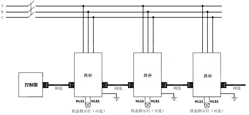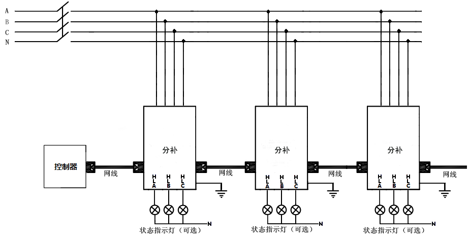 智能组网:485通讯接口,内置 MODBUS-RTU协议;可实现远程监控。产品可多台联机使用时,自动产生主机从机,构成无功自动控制系统。