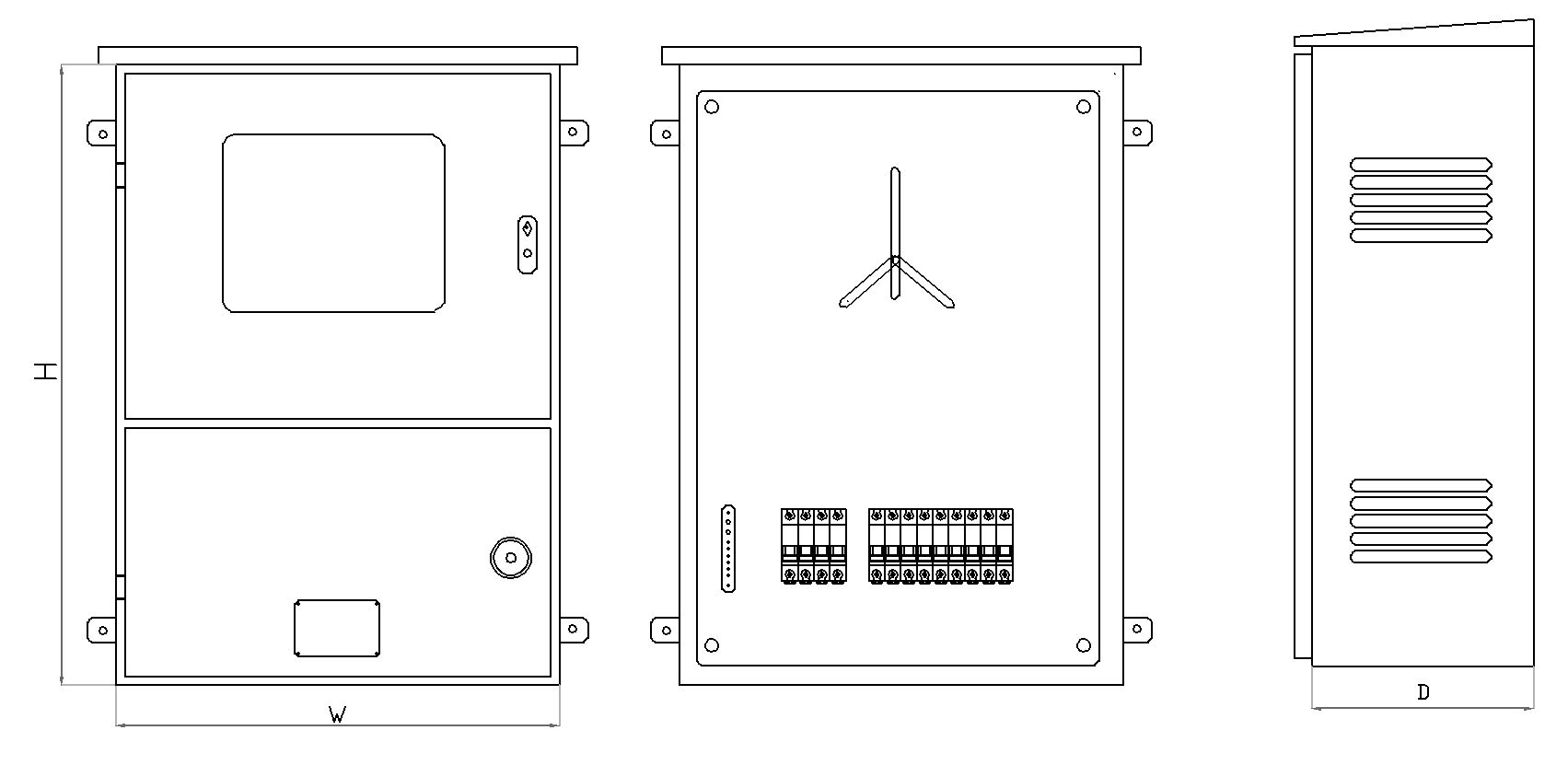 结构布局:采用集成化设计理念,提供并网保护功能及预留电表安装位置。箱门需要专业钥匙开启,实现专业管理,也能防止窃电行为。
