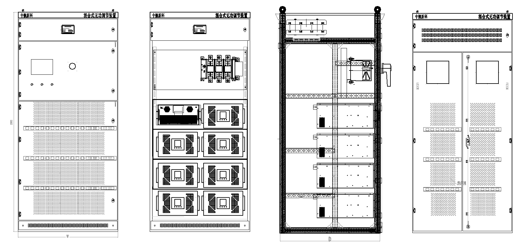 模块设计;混合式无功补偿装置采用模块化组装工艺,结构简单合理,模块组装互换通用性强,可实现多种补偿方案组合的标准化生产。
