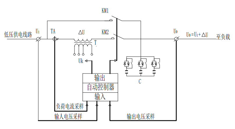 旁路功能;采用晶闸管过零切换,配合继电器旁路,换档快, 损耗低,寿命长,输出无冲击,调压、旁路可手动切换;